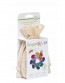 Niet giftig, natuurlijke sojawaskrijtjes in 16 kleuren: rood, groen, blauw, zonnengeel, zwart, bruin, oranje, paars, pink, grasgroen, luchtblauw, felgeel, grijs, lila, perzik, donkerblauw in een ecru katoenen zakje.